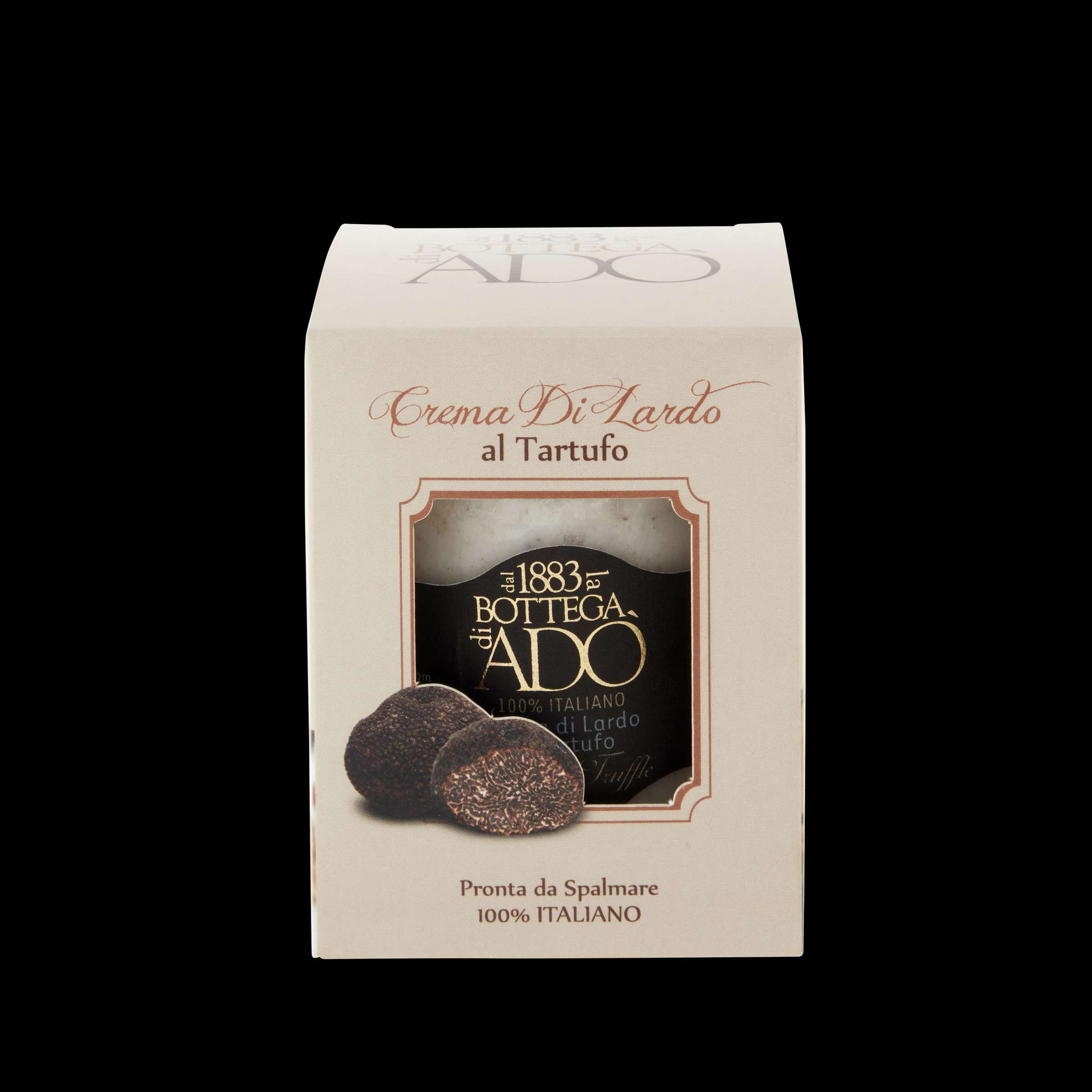 Crema ottenuta mediante fine macinatura di Lardo stagionato in conca di marmo con aggiunta di tartufo nero estivo. Consistenza morbida, vellutata e non oleosa, con profumo delicato e finemente speziato. Aspetto cremoso, malleabile, di colore bianco, gusto dolce e moderatamente saporito.