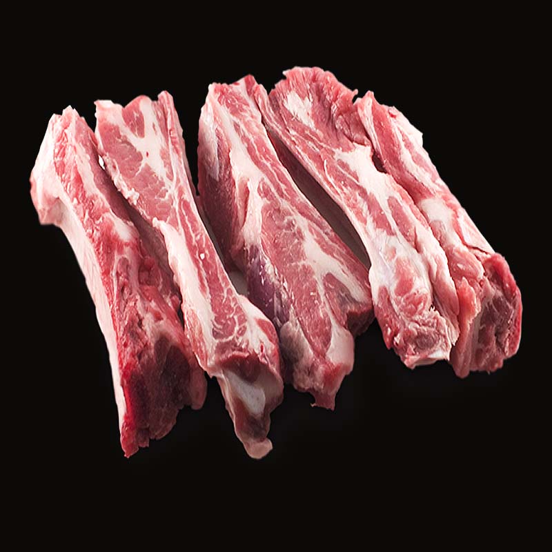 Costine di maiale fresche tagliate a strisce.