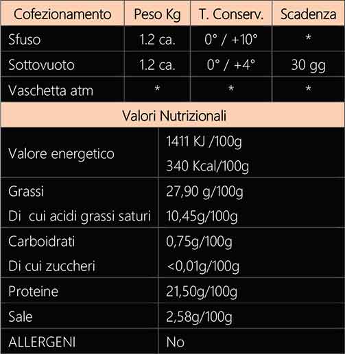 Insaccato di puro suino composto da un impasto di carne magra, grasso e cotenna di suino, con l’aggiunta di sale, pepe e altre spezie;ai fini dell’insacco sono utilizzati esclusivamente budelli naturali. Consistenza morbida e gelatinosa, colore rosato tendente al marrone chiaro, profumo delicato e finemente speziato secondo antica ricetta Toscana, gusto morbido, pastoso e delicato. Il prodotto si presenta nel contenitore classico della zampa naturale.